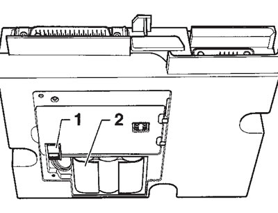 4. Odłącz złącze (1 na ilustracji) i wyjmij baterie zapasowe.