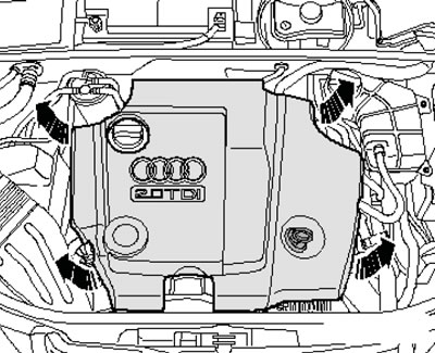 4. Zdejmij górną osłonę paska rozrządu, odkręcając jej zapięcia (7 na ilustracji 46.1a).