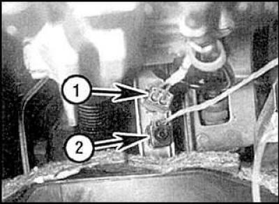 1. Przełącznik zamontowany jest na uchwycie pedału hamulca. Wyłącznik światła hamowania (1) jest górnym wyłącznikiem na uchwycie. Dolny przełącznik (2) jest przełącznikiem układu tempomatu.