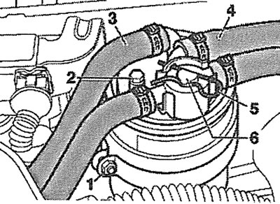 7. Przeciąć opaski zaciskowe mocujące przewody paliwowe 3 i 4 za pomocą obcinaków bocznych i odłączyć przewody od filtra (zobacz ilustrację 9.1).
