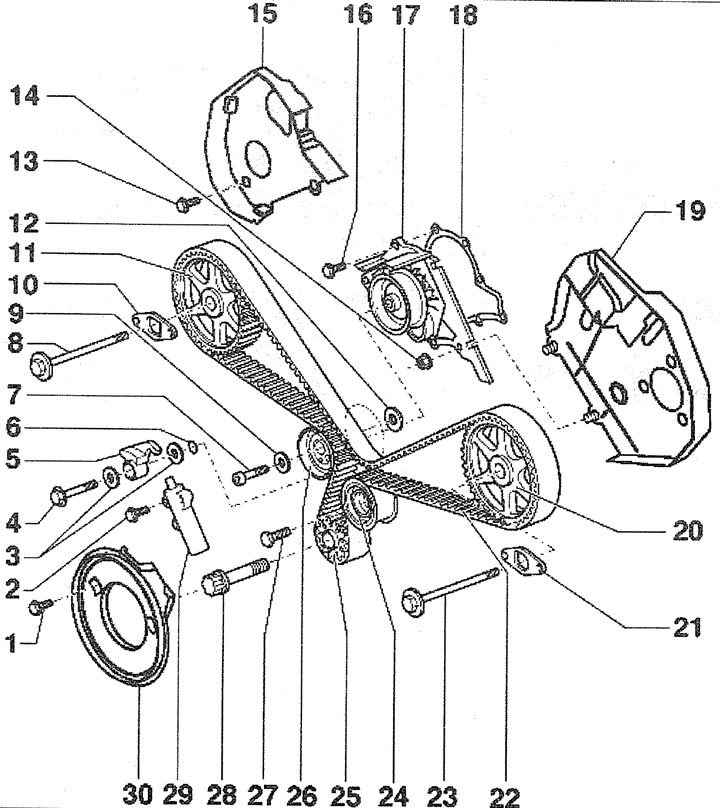 30 - dolna część osłony ochronnej napędu mechanizmu rozrządu