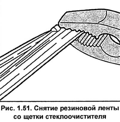 Za pomocą szczypiec ściśnij wzmocnienia stalowe razem z gumką i wsuń je do zacisku górnego pióra wycieraczki. W tym przypadku antenki zacisku powinny wejść w zapięcia na gumce (patrz 1,52).