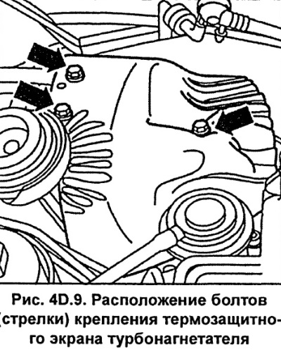 Odkręć śruby i zdejmij osłonę cieplną turbosprężarki (patrz 4D.9).
