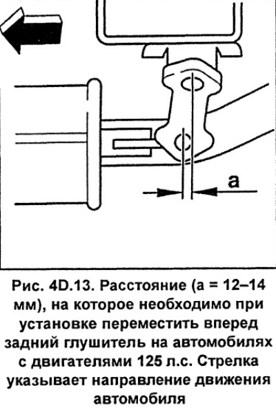 Przesuń tylny tłumik do przodu o 12-14 mm (patrz 4D.13) i zabezpiecz go w tej pozycji.