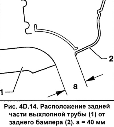 Sprawdź i w razie potrzeby wyreguluj odległość między tylną krawędzią rury wydechowej a zderzakiem, która powinna wynosić co najmniej 40 mm (patrz 4D.14).
